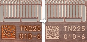 MD-X 系列刻印头中配备相机。通过识别目标物的形状进行校准,可始终进行无错位刻印。