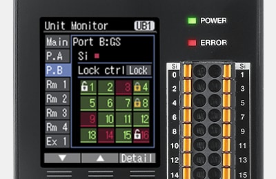 安全控制器GC 系列是一款具有超快速响应时间、实时显示状态的液晶显示器、轻松易用等特点的安全控制器。5.5 ms(有扩展单元时:9.6 ms)的响应速度帮助缩短安全距离。而且,即使程序量增加,响应时间也不会受到影响。主机上搭载的液晶显示器能够显示以往*无法看到的安全设备的状态。大幅提升了安全控制器的易用性。此外,采用了简化配线的接口,避免配线错误,并采用简易设定的软件有效减少了配置时间。备有通过扩展单元支持最大输入点数212 点的 GC-1000和内置继电器输出的 GC-1000R两种主控制器可选。* 与本公司SC 系列产品的比较