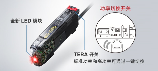备有丰富的光纤元件,可支持多种检测及环境的光纤传感器。一次开关操作即可将受光量切换为标准/高功率,或通过优化光量的饱和免除功能进行稳定检测等,实现了可靠性和易用性。