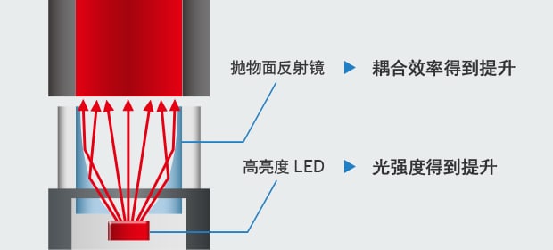 采用全新的高亮度 LED 和高效的线路设计,光强度得到大幅提升。