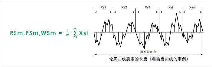 轮廓曲线元素的平均长度(mean width of the profile elements)(RSm、PSm、WSm)