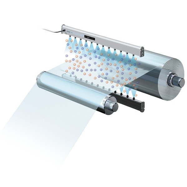 滚轴与滚轴之间会产生大量带电。如果在展开时会出现火花、卷绕时会夹入异物或带电的情况下交货,就会收到卷绕薄膜无法剥离、弄疼作业人员等投诉。使用新款静电消除器能够解决这些问题。