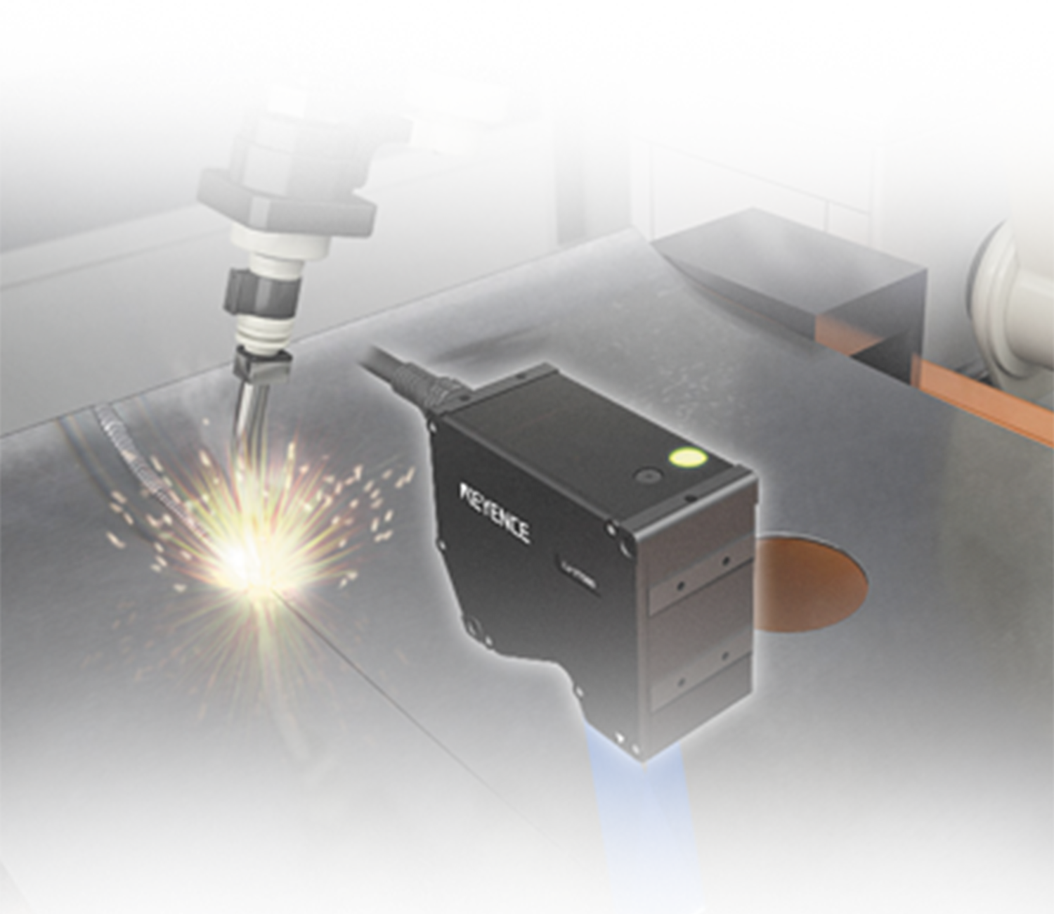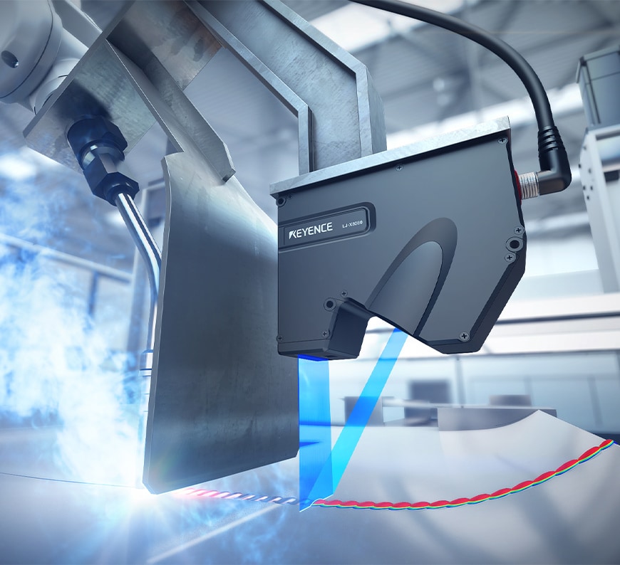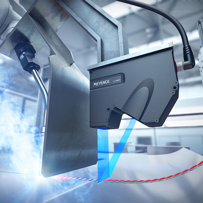 通过追随在焊接焊炬后运行测量仪,即可实现全数检测。以形状判断是否为良品,因此不会因颜色不均匀而出现误检测。