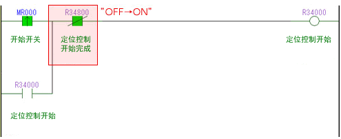 (2) 定位控制开始完成继电器为ON时,会重置自我保持回路,因此定位控制开始继电器为OFF。