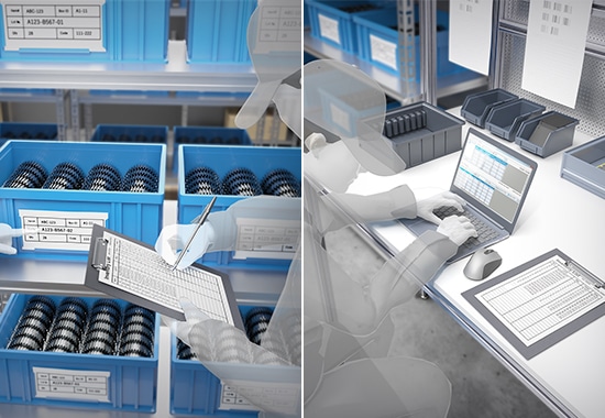 以往*:目视确认后记入台账,再手动录入电脑
