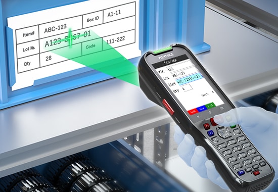 备有满足制造业及物流业等多种现场需求的手持终端。可快速读取现场的污染难读条码或位于远处的条码等,提高现场的作业效率。同时,即使没有条码,也可使用字符识别(OCR)功能提高业务效率。